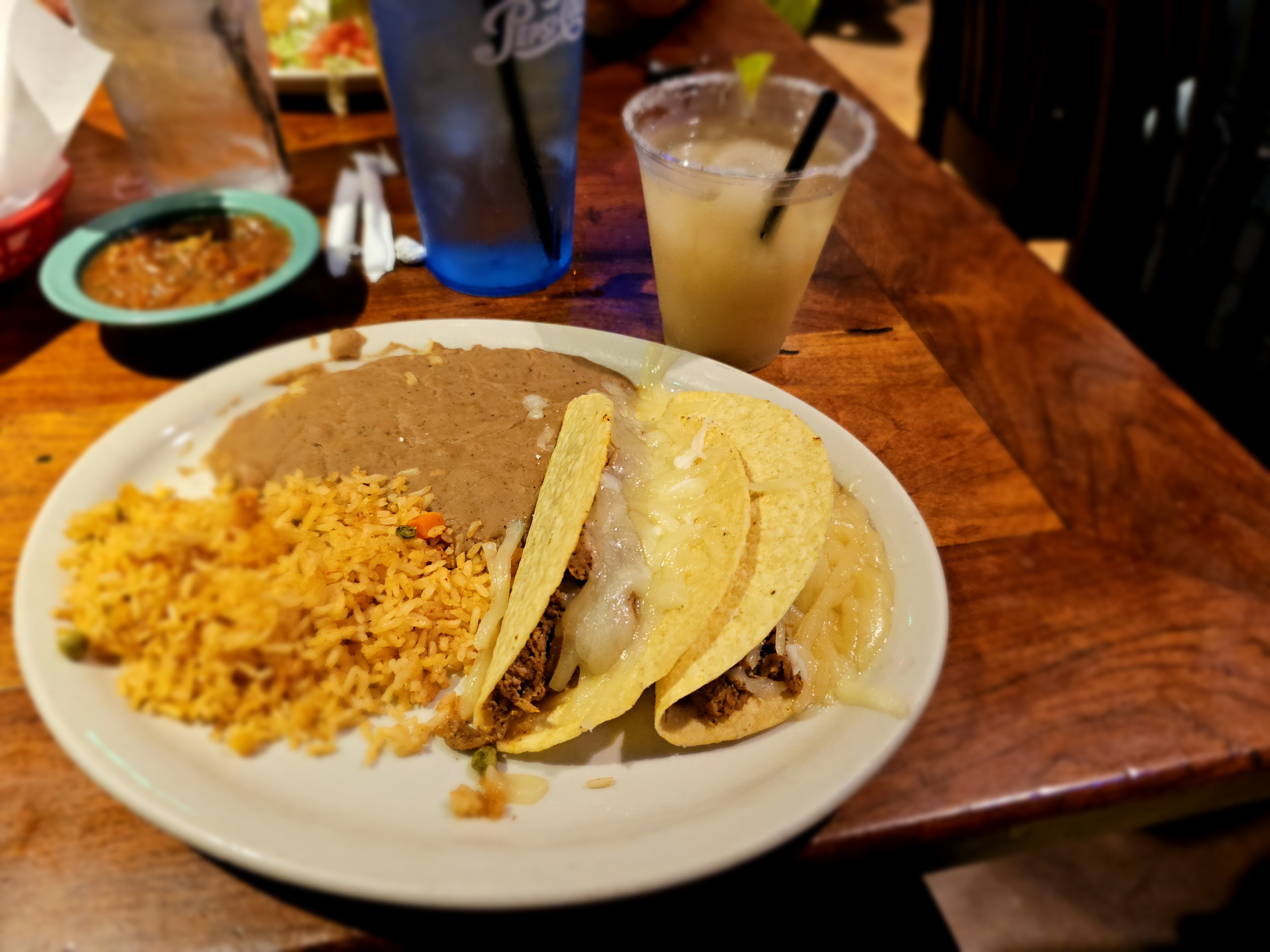 I decided to order a frozen prickly pear margarita and tacos for lunch!